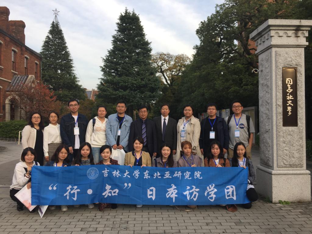 From November 5th to November 11th, 2018 Professor Pang Deliang and Professor Shen Haitao all together four teachers of Northeast Asian Studies College, led 15 postgraduate students to pay an academic visit to Japan. The delegation visited the Niigata, Osaka, and Kyoto and had conducted a week-long survey on the theme of “China’s State Image in the Eyes of Japanese Youth”. The visit was jointly initiated by the Office of Chinese Language Council International, Northeast Base of Chinese Education, and the Office of Global Engagement, Jilin University. Northeast Asian Studies College is responsible for organization and implementation.