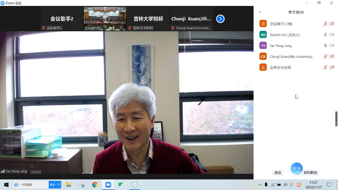 Professor Jung hoped that the attending students and teachers would feel free to ask questions to get timely answers and to discuss. The students who attended the lecture, both online and in person, were eager to ask questions, and Professor Jung answered them in detail, creating a lively atmosphere. At the end of the event, Prof. Xuan Chunji said that Prof. Jung's lecture and research series are of great value, especially in the field of energy, which involves interdisciplinary research, and will not only clarify the research ideas for the faculty and students of the Institute of World Economics of the Northeast Asian Studies College of Jilin University, but also help the faculty and students of other institutes and other colleges to explore new research perspectives.