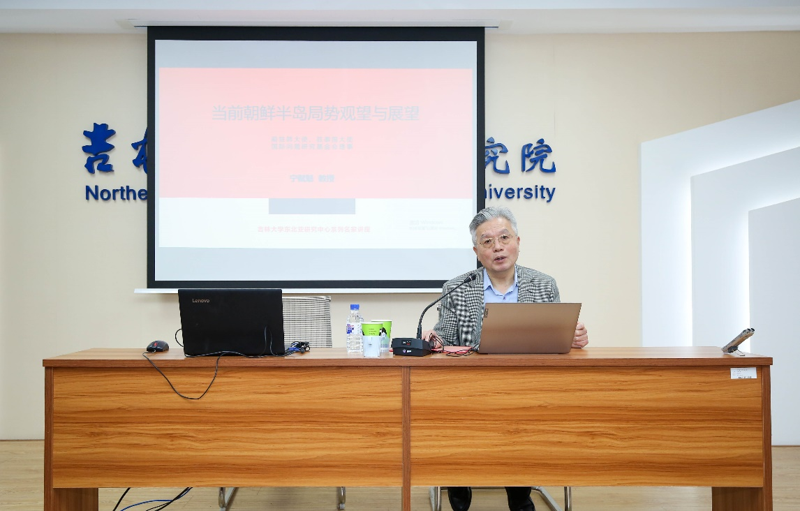On April 23rd, 2021, Professor Ning Fujui, former Ambassador to Korea, Ambassador to Thailand, and Director of the China Institute of International Studies, was invited by the Northeast Asian Research Center of Jilin University to give a lecture entitled Observation and Prospects of the Current Situation on the Korean Peninsula at the Dongrong Building. More than 60 teachers and students from the Northeast Asian Studies College and other colleges of Jilin University came to the packed house. The conference was hosted by Professor Zhang Huizhi, Deputy Director of Northeast Asian Research Center of Jilin University.