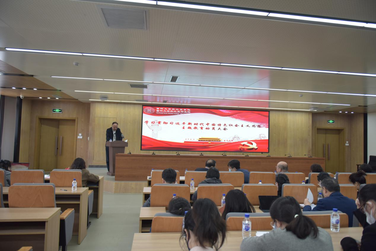 实际,邱松强调:一要深刻认识主题教育的重大意义。在全党深入开展学习贯彻习近平新时代中国特色社会主义思想主题教育,是党中央做出的重大决策,是贯彻落实党的二十大精神的重大举措,是一件事关全局的大事,是学院党的政治生活中的头等大事和政治任务。全院领导干部、各支部和广大党员要深刻认识开展主题教育的重大意义,掀起学习热潮,通力协作、真抓实干,以真的态度、实的行动、严的作风,切实做好主题教育,推动学院高质量发展。二要准确把握目标要求。深入开展主题教育,总要求是“学思想、强党性、重实践、建新功”,根本任务是坚持学思用贯通、致信行统一,达到凝心铸魂筑牢根本、锤炼品格强化忠诚、实干担当促进发展、践行宗旨为民造福、廉洁奉公树立新风这五个方面主要目标。三要认真落实主题教育各项措施,加强组织领导,突出实践实效,做好宣传引导,克服形式主义。