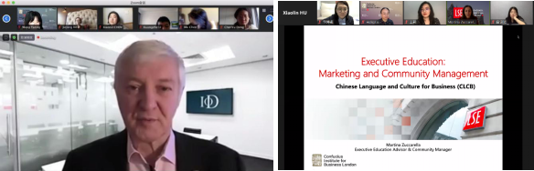 东北亚研究院立足于跨学科人才培养的传统和优势,高度重视研究生综合研究生能力的培养,为研究生扩展国际视野、提升外语应用水平提供多种形式的学习机会。在世界政治经济格局出现巨大变化的背景下,此次线上课程尤为重视理论与实际的深度结合,不仅关注学界的主要观点,更关注经济界等从事一线实际工作的专业人士的看法。课程主讲人主要来自英国伦敦政治经济学院的一流国际问题学者和英国经济金融界的高级管理人员,其中不乏英国经济界的知名人士,如英国董事协会主席(大伦敦区)、伦敦富通咨询有限公司董事总经理David Stringer-Lamarre、 CBE大英帝国司令勋章获得者,怡和洋行有限公司的公司董事Martin Gilbert Barrow、大英帝国勋章获得者,中英文化使者Dr. Hong Lu、伦敦城郡督,英国Z/Yen公司董事长Prof. Micheal Mainelli、亚能咨询创始人Oliver Shiell 等。这些学者结合自身的工作实践和感受,为东北亚研究院研究生和青年教师讲授世界经济发展趋势、区域经济一体化进程、世界人口发展、多元文化下的有效沟通等多领域的全球热点问题,如孙子兵法与英语学术写作,新冠病毒以来政策选择和弹性网络生产,工商管理对英国的机遇和挑战,全球经济发展和启示等具体课程,并且带领和指导学生们开展了小组讨论这样的实践活动。