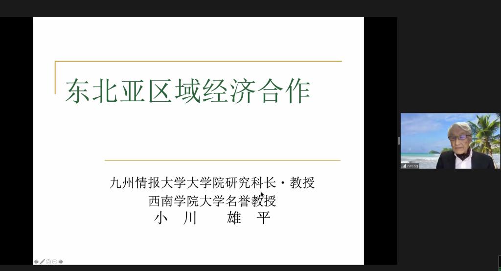 日本研究所的邀请,日本九州情报大学大学院经营情报学研究科科长小川雄平(OGAWA YUHEI)教授举行了以“东北亚区域经济合作”为主题的线上学术报告会。本次报告由亚洲色情