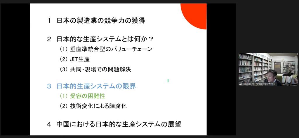 日本研究所的邀请,日本西南学院大学商学部藤川升悟(FUJIKAWA SHOGO)教授做了以“日本型生产体系的竞争力及其局限性”为主题的线上学术报告会。本次报告采取了线上和线下相结合的方式,由亚洲色情