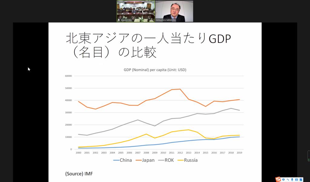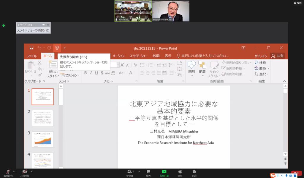 日本研究所的邀请,日本环日本海经济研究所调查研究部主任研究员、日本东北亚学会三村光弘(MIMURA MITSUHIRO)会长,做了以“东北亚区域合作必要的基本要素—以平等互利为基础的横向关系为目标—”为主题的学术讲座。本次讲座采取了线上和线下相结合的方式,由亚洲色情