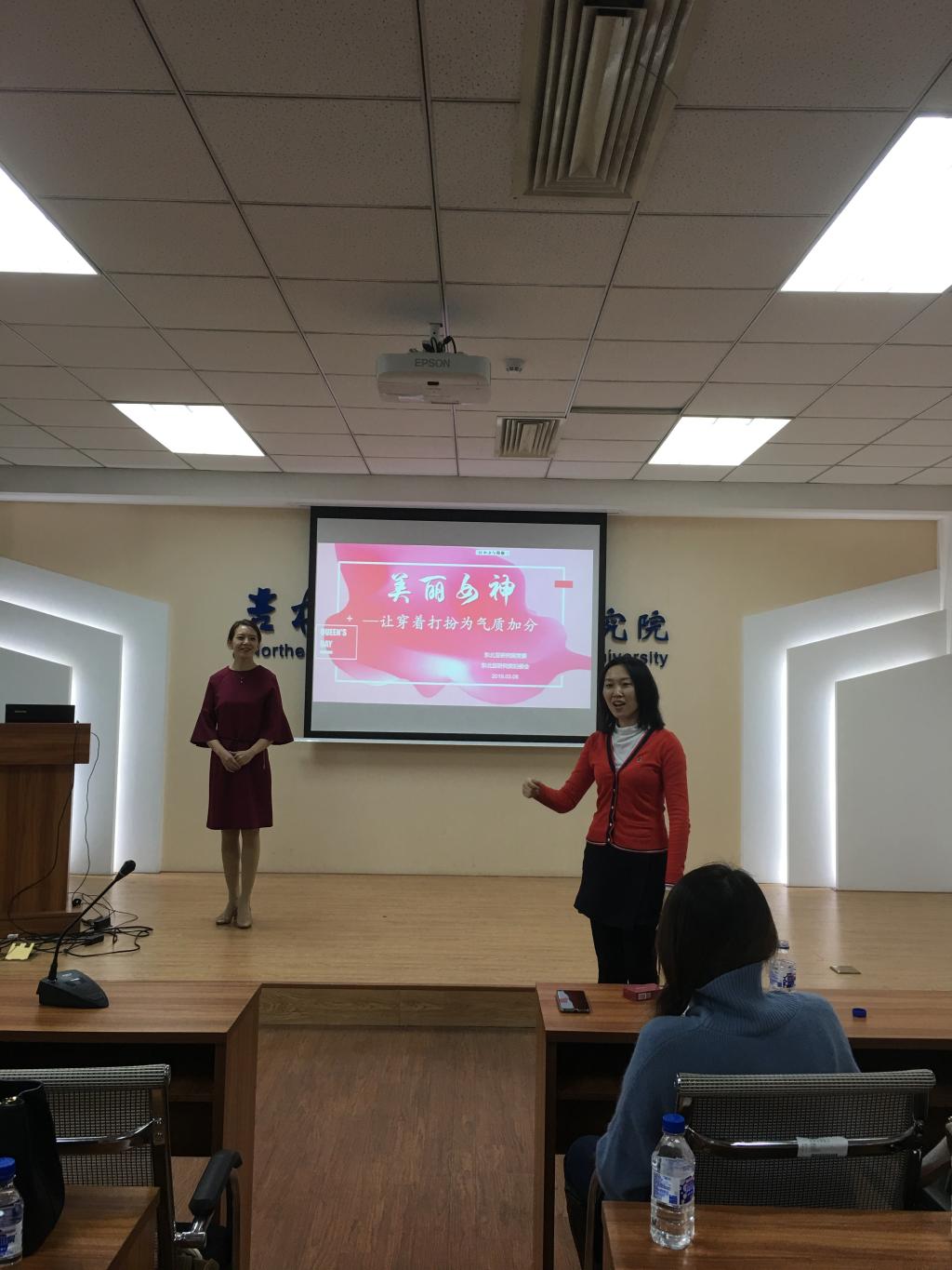 女性魅力形象,丰富业余生活,东北亚研究院党委、院妇委会于3月8日上午在东荣大厦B215会议室举办了“美丽女神——让穿着打扮为气质加分”的讲座培训。