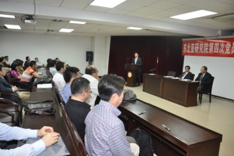 东北亚研究院第四次党员大会在东荣大厦404室隆重召开。会议由东北亚研究院院长于潇同志主持,党委书 记徐辉同志、副书记张剑宇同志、副院长张慧智同志、曹海波同志等53名教工党员及学生党员代表参加了本次会议。学校党委常务副书记兼副校长、哲学社会科学 资深教授王胜今同志代表学校党委出席了本次会议。