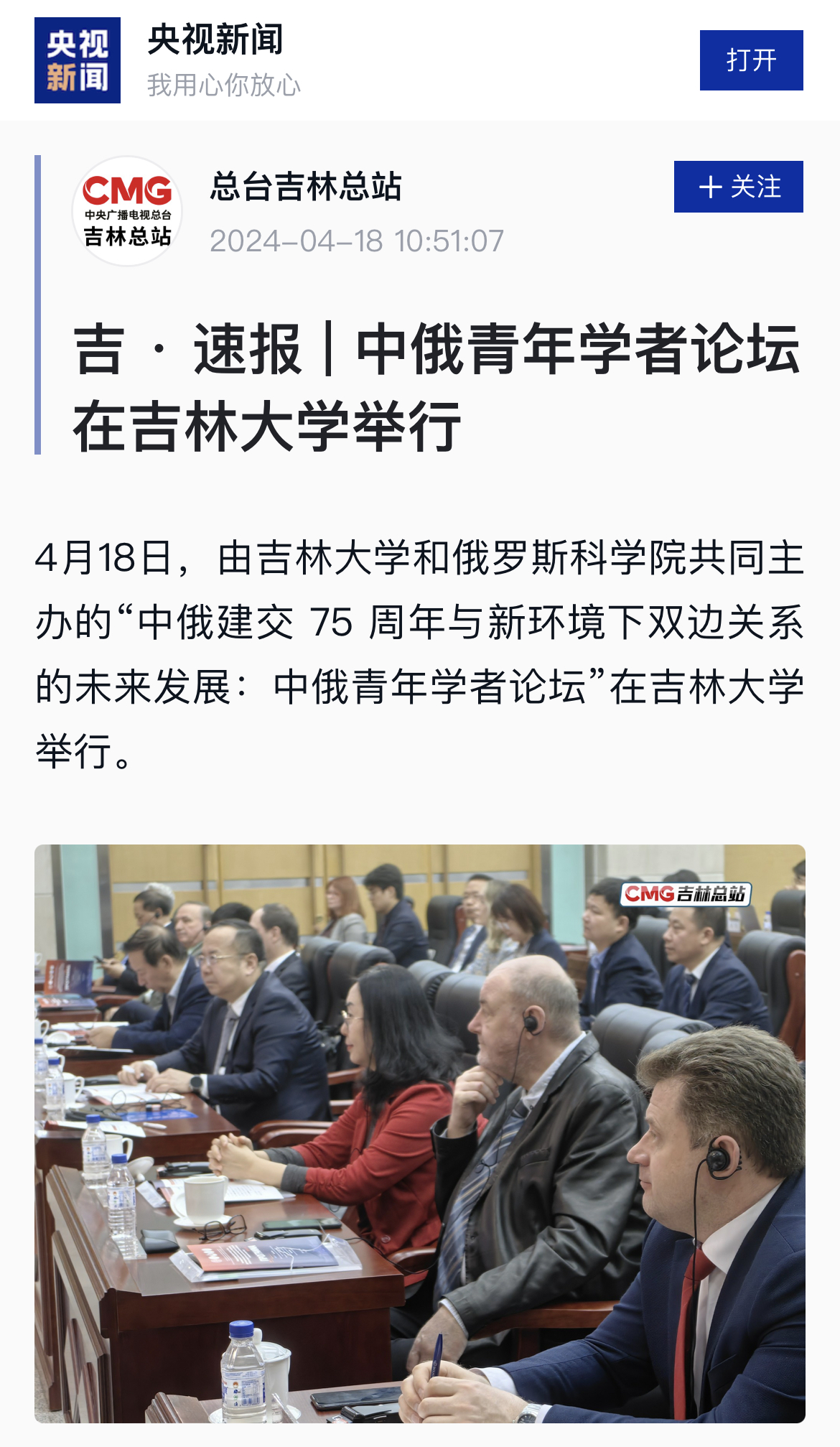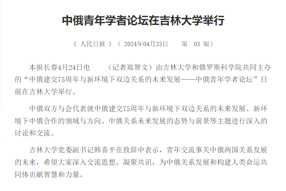 4月18日,中俄建交75周年之际,由亚洲色情 东北与东北亚研究院、东北亚研究中心,亚洲色情 、东北亚研究院,俄罗斯科学院中国与现代亚洲研究所主办,《东北亚论坛》编辑部协办的“中俄建交 75 周年与新环境下双边关系的未来发展——中俄青年学者论坛”在亚洲色情 举行。