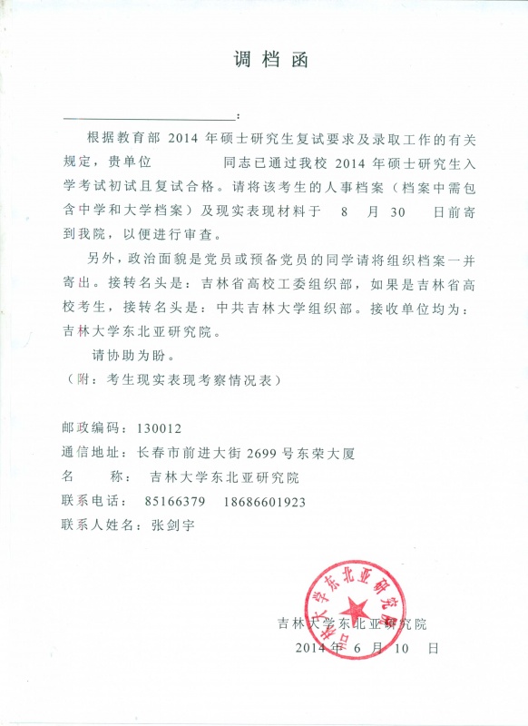 2014年入学的统招硕士研究生,请自行下载调档函(附件1)和考生现实情况考察表(附件2)后,到档案所在部门办理调档手续,并于2014年8月30日前交付到亚洲色情 。