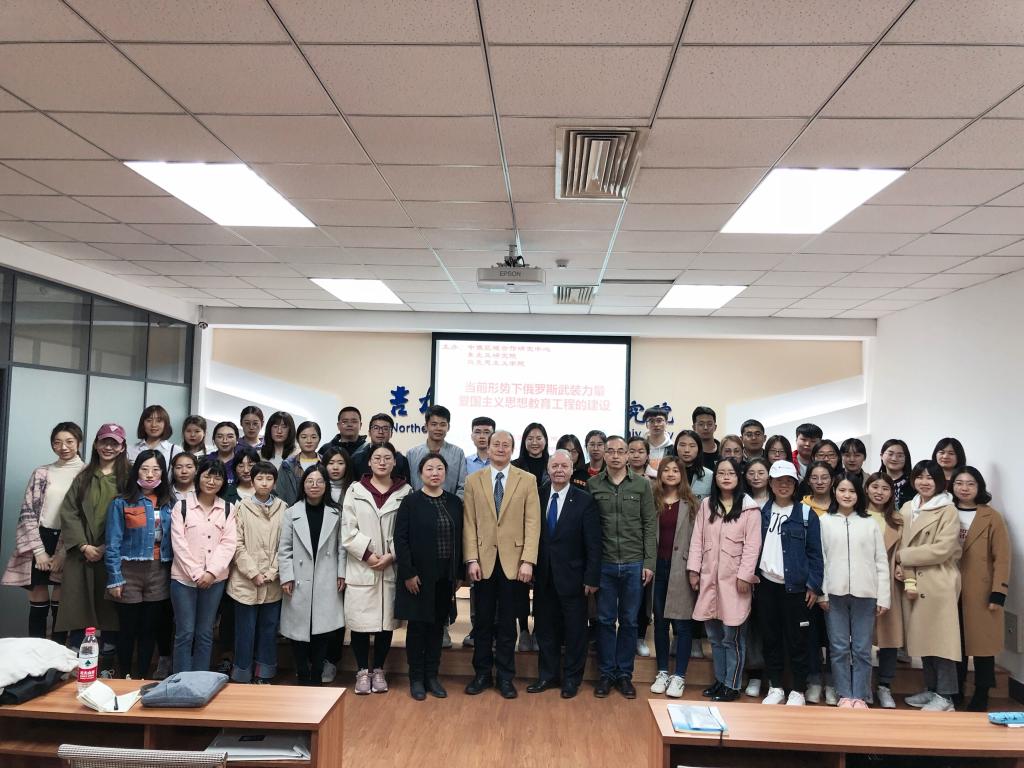 2019年4月17日,俄罗斯军事科学院叶甫盖尼廖申教授应东北亚研究院的邀请,在东荣大厦会议室举办了题为“当前形势下俄罗斯武装力量爱国主义思想教育工程的建设”的学术报告。报告由朱显平教授主持,徐博副教授担任现场翻译。东北亚研究院国际政治专业的研究生以及马克思主义学院的部分学生参加了报告会。