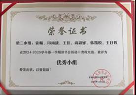 在本次活动中,第三小组的袁畅、宋雨欣、王佳、尚思妤、韩凯悦、王日煌同学凭借对本书的深刻了解以及自身学科知识的运用在本次读书会中获得最佳小组称号,其中王日煌同学获得读书标兵荣誉称号。