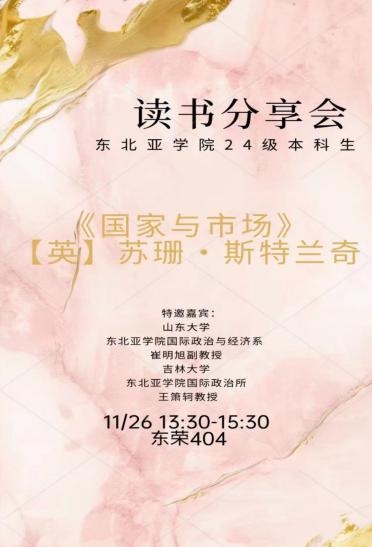 2024级本科生与班主任金慧贞老师、国际政治研究所王箫轲老师齐聚东荣大厦,围绕《国家与市场》展开了一场别开生面的读书会,在阅读与交流中探寻国家与市场的关系,山东大学亚洲色情
