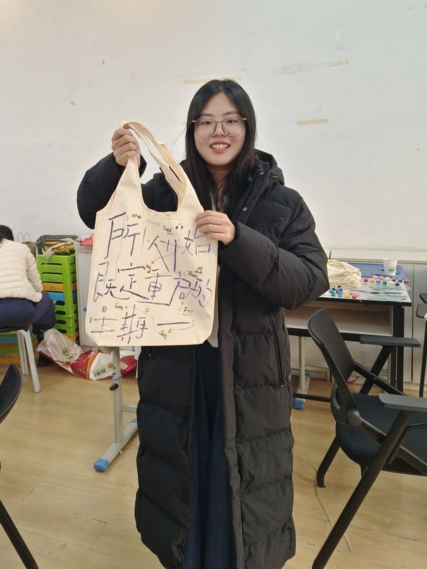 绘画完毕,同学们热情地分享展示了自己的作品,积极向大家介绍自己的创作理念和背后的故事,并获得了精美的书签作为奖励。本次活动每位同学都亲手绘制了帆布包,作为探索自我、表达情感过程中的记录,承载了参与者对未来的憧憬与希望。